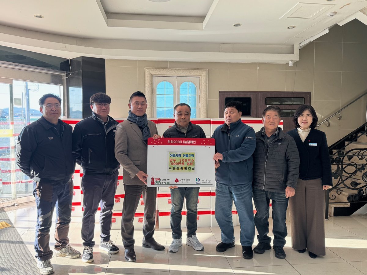 [충청뉴스큐] 충북 보은군은 ㈜연준종합건설 강문수 대표가 지난 15일 장애인연합회에 만두 300박스를 기탁했다고 밝혔다.