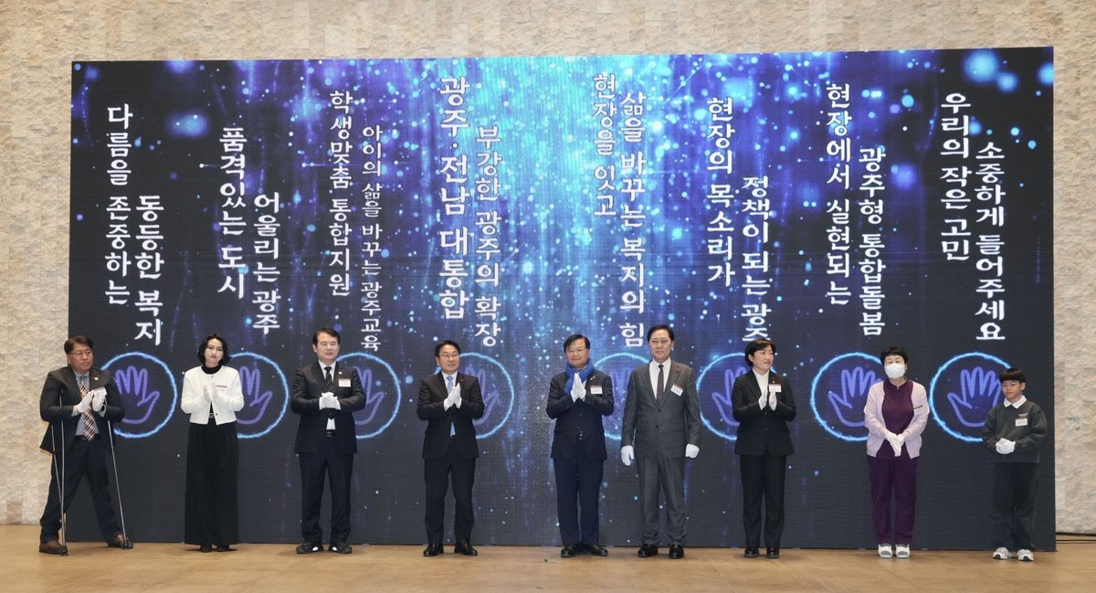 강기정 시장은 “광주복지는 행정이나 민간 어느 한쪽의 노력만으로는 완성될 수 없다”며 “광주와 전남이 행정통합의 길에서 함께하듯, 복지현장에서도 민·관·정이 연대와 협력의 속도를 맞출 때 진정한 복지가 실현된다”고 강조다.