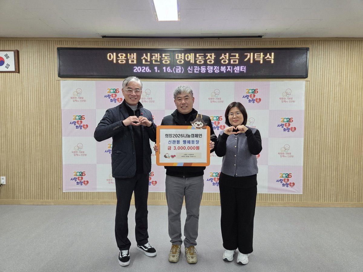 진상호 신관동장은 “지역을 위해 꾸준히 힘쓰며 나눔을 실천해 주시는 이용범 신관동 명예동장님께 진심으로 감사드린다”며 “앞으로도 관내 취약계층을 위한 다양한 지원이 이어지기를 바란다”고 말했다.