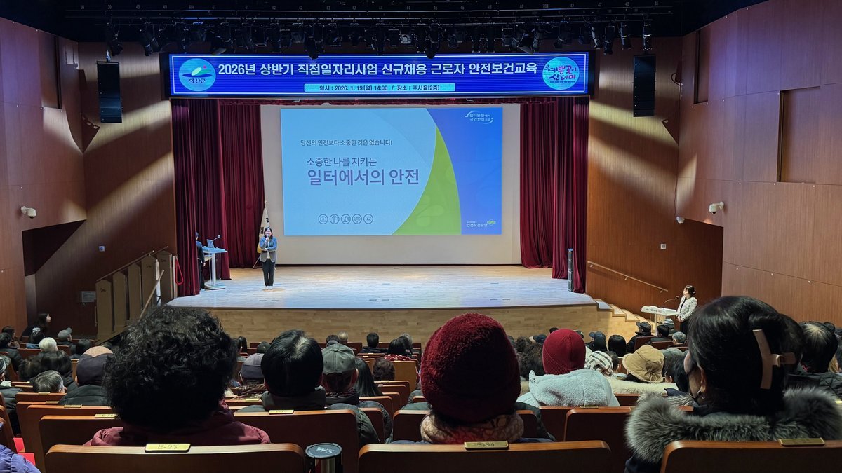 [충청뉴스큐] 예산군은 지난 19일 군청 추사홀에서 예산군 직접일자리사업 근로자와 담당자 등 280여명을 대상으로 산업안전 및 중대재해 예방을 위한 안전보건교육을 실시했다.