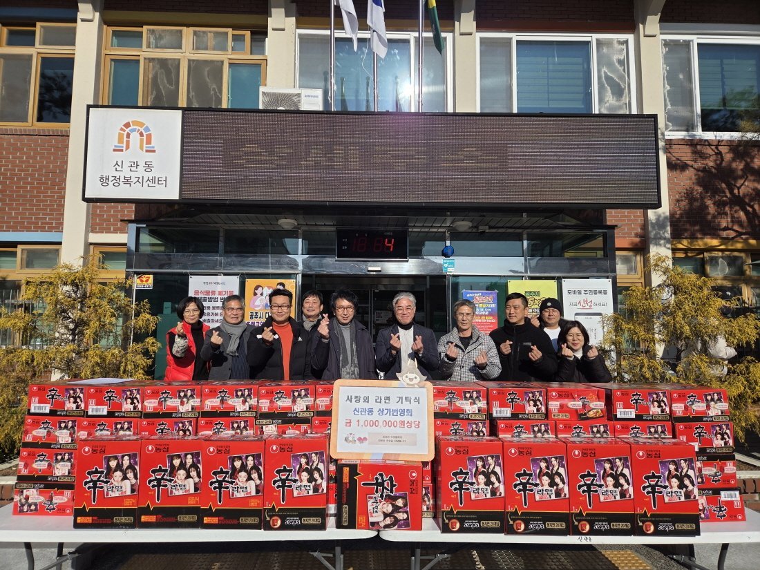 이번에 기탁된 라면은 신관동상가번영회의 뜻에 따라 신관동 관내 취약계층에 전달될 예정이다.