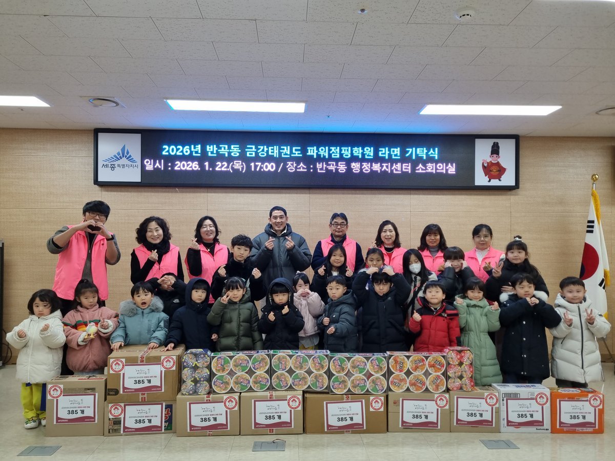 [충청뉴스큐] 세종특별자치시 반곡동은 지난 22일 금강태권도 파워점핑학원이 라면 385개를 기탁했다고 밝혔다.