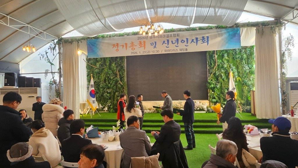 [충청뉴스큐] 충주시파크골프협회는 23일 충주 파라다이스 웨딩홀에서 협회 소속 37개 클럽 회장 및 임원, 협회 임원 등 160여명이 참석한 가운데 2026년 정기총회 및 신년인사회를 개최했다.