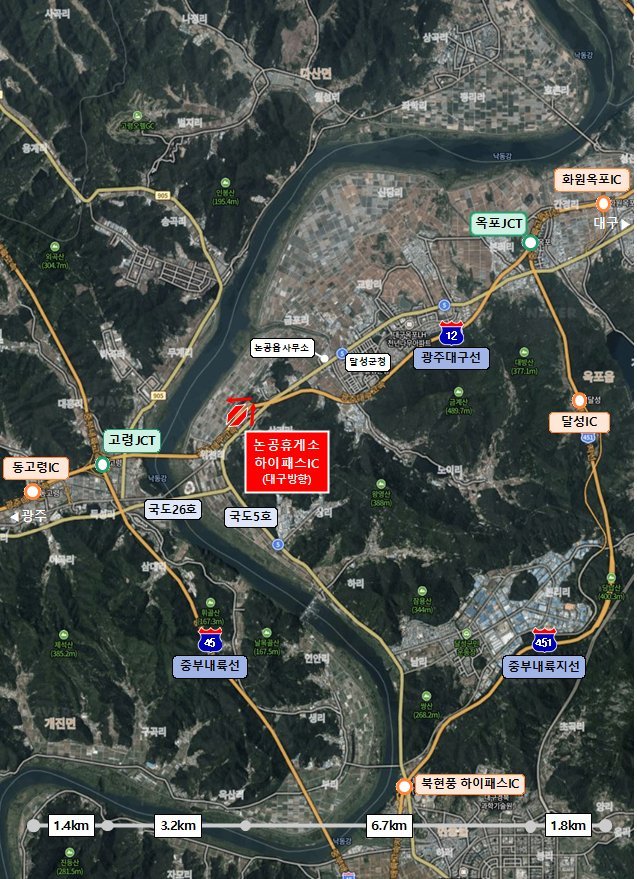[충청뉴스큐] 달성군 논공읍 주민들이 그동안 고속도로를 이용하기 위해 인근 시·군까지 이동해야 했던 불편이 해소된다. 국토교통부는 광주-대구 고속도로 논공휴게소에 일방향 하이패스IC*를 신설하는 고속도로 연결허가를 승인했다.