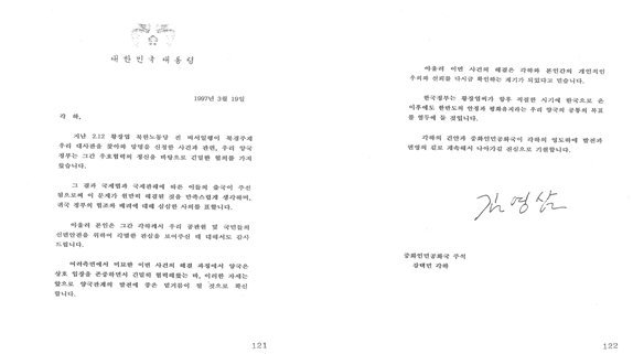 주요 외교 기록으로는 김영삼 대통령과 강택민 중국 국가주석이 양국 우호 증진을 위해 주고받은 서한을 비롯해 중국 지진 피해 위로 전문, 당시 국제적으로 큰 이목을 끌었던 ‘황장엽 망명’ 관련 친서 등이 있어 당시 외교 현장을 체험할 수 있다.