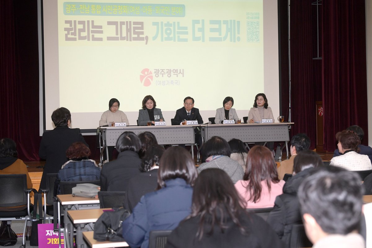 [충청뉴스큐] 광주광역시는 광주광역시교육청, 광주광역시의회, 북구, 북구의회와 함께 27일 오후 북구문화센터에서 북구 주민과 전문가, 관계기관 등이 참석한 가운데 ‘광주전남 통합 북구권역 시민공청회’를 개최했다.
