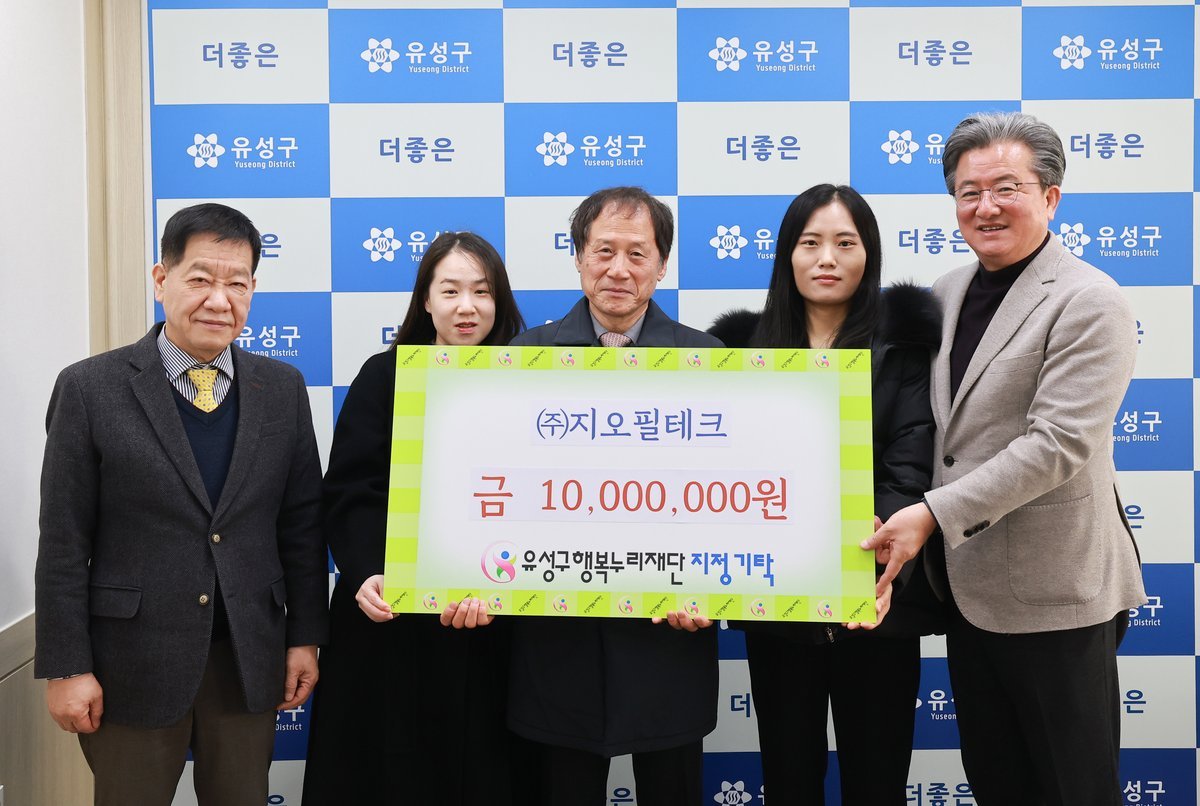 정용래 유성구청장은 "지속적인 나눔을 실천해 주신 지오필테크에 감사드린다"며 "앞으로도 민관 협력을 통해 나눔문화가 지역 전반으로 확산할 수 있도록 노력하겠다"고 말했다.