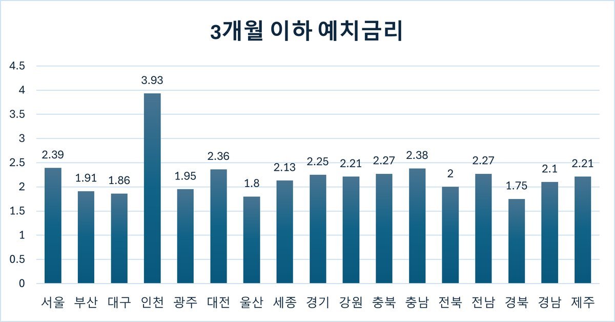 전남도는 1월 13일 금리 기준, 17개 광역지자체 가운데 ‘3개월 이하 정기예금 금리’ 2.27%로 전국 5위, ‘6개월 이하 정기예금 금리’ 2.32%로 6위를 각각 차지했다.
