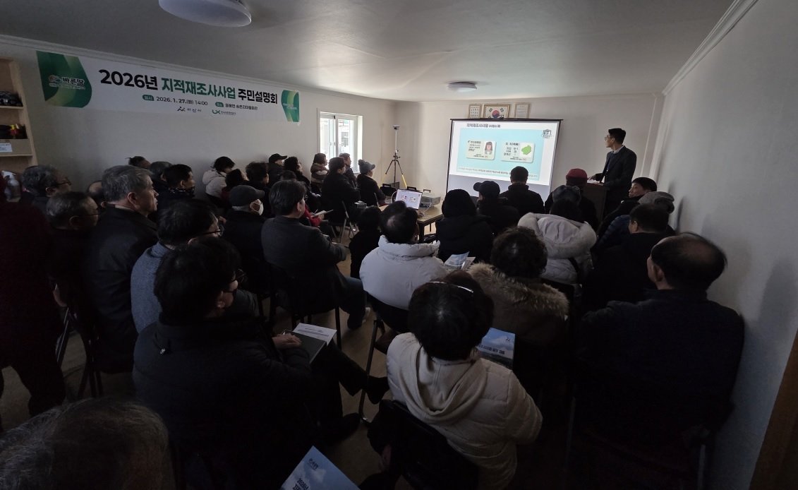 [충청뉴스큐] 아산시가 지난 26일부터 4일간 각 사업지구별 마을회관에서 ‘2026년 지적재조사사업 주민설명회’를 개최하고 토지소유자와 주민들의 적극적인 참여와 협조 속에 성황리에 마무리했다.
