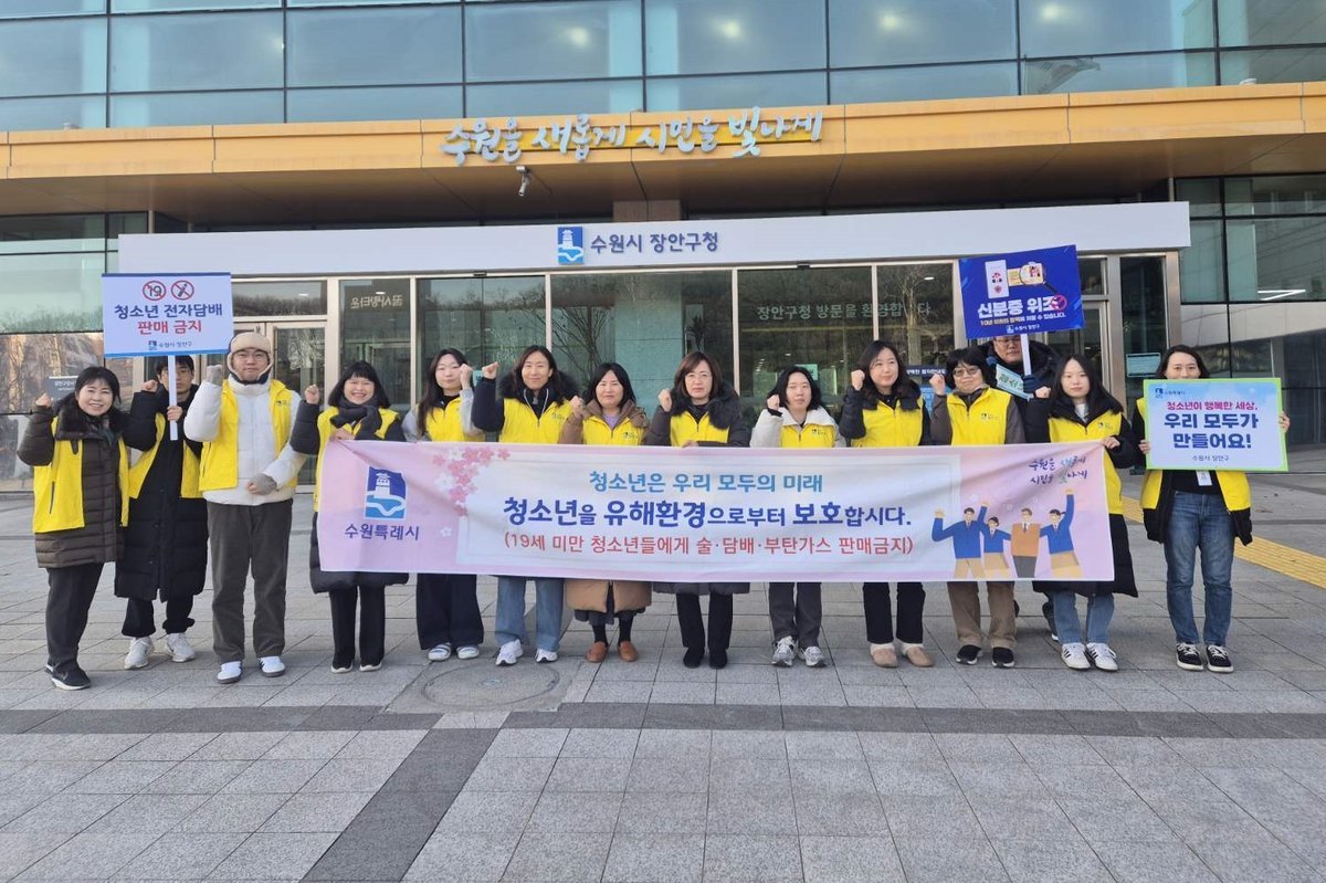 이날 캠페인은 장안구청 가정복지과 주관으로 진행됐으며 겨울방학 기간 청소년들의 외부 활동이 증가함에 따라 발생할 수 있는 유해환경 노출을 사전 예방하고 지역사회 전반에 청소년 보호에 대한 인식을 확산하기 위해 추진됐다.