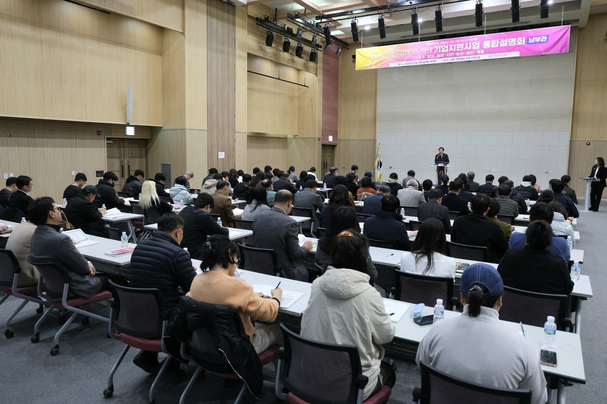 이번 설명회는 공주·부여·청양·서천 등 남부권 7개 시·군 기업을 대상으로 2026년도 기업지원사업 정보를 종합적으로 제공하기 위해 마련됐다.