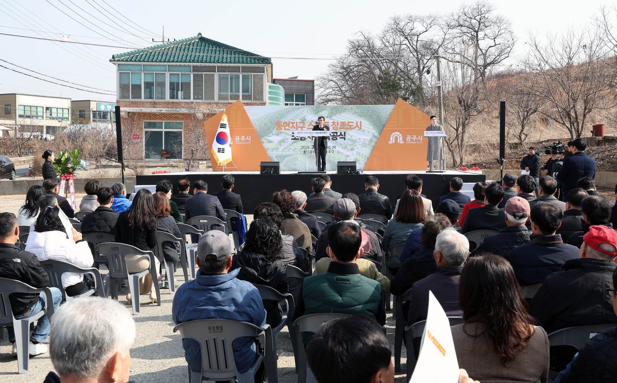 도는 5일 공주시 동현동 일원에서 전형식 도 정무부지사와 한상배 한국식품안전관리인증원장, 이종규 한국쌀가공식품협회 상임부회장, 최원철 공주시장 등이 참석한 가운데 ‘공주 동현지구 스마트 창조도시 조성사업’ 착공식을 개최했다.