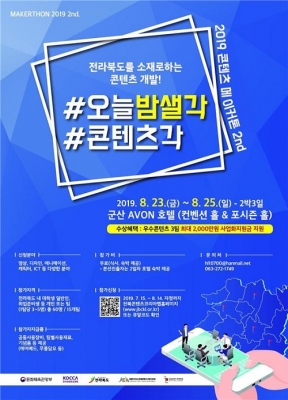 [충청뉴스큐] 전라북도와 전라북도문화콘텐츠산업진흥원은 전라북도의 다양한 콘텐츠와 새로운 창작자를 발굴하기 위해 전라북도 콘텐츠 메이커톤 대회를 오는 8월 23일부터 3일간 군산 에이본호텔에서 개최한다.