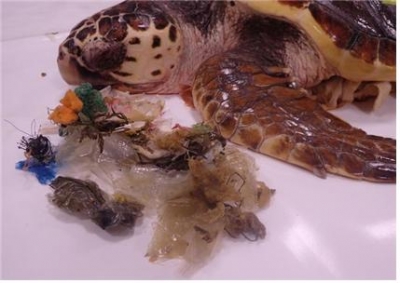국회 농림축산식품해양수산위원회 정운천 의원이 국립생태원과 국립해양생물자원관으로부터 받은 자료에 따르면, 최근까지 부검한 바다거북 19개체의 장 내 오염도를 분석한 결과 4종류의 294개 해양쓰레기가 발견됐다.