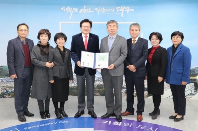 [충청뉴스큐]이상길 대구시 행정부시장은 17일 대구시청에서 결핵 퇴치를 위한 성금모금의 활성화를 위해 ‘크리스마스 씰’ 성금을 대한결핵협회 대구경북지부에 전달했다.