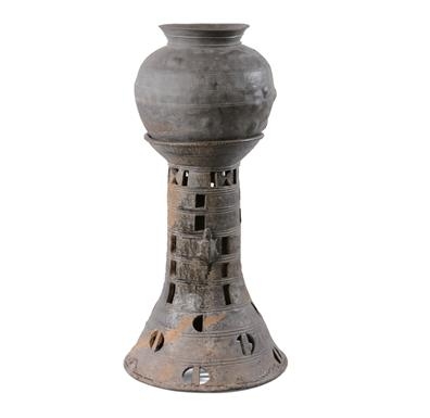 ‘도기 거북장식 원통형 기대 및 단경호’는 통형 그릇받침 위에 목이 낮은 도기 항아리가 올려 있던 상태 그대로 출토된 희귀한 사례이며 백제·신라·가야 등 삼국시대 통형기대에 거북이 모양 토우가 장식된 사례로는 유일하다.