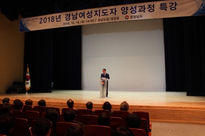 [충청뉴스큐] 경상남도가 16일, 경남도청 신관대강당에서 여성의 정치·사회 참여 확대를 위한 ‘2018 경남여성지도자 양성과정 특강’을 실시했다.