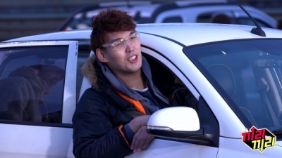 대한민국 최장신인 그가 하얀 소형차 안으로 몸을 ‘구겨 넣고’ 있는 것. 하승진은 계속해서 자신의 몸이 차 밖으로 튀어 나가자 급기야 헬멧과 담요를 요구했다고. 이에 장성규는 “승진이가 차를 들고 가”며 농담했다고 해 보는 이들을 폭소케 한다.