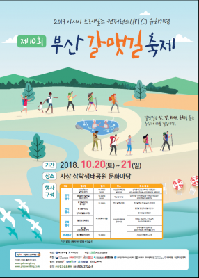 아울러, 내년에 개최되는 ‘2019 ATC부산 대회’를 부산시민 축제의 장으로 펼쳐가고자 올해 처음으로 전구이 참여하는 ‘갈맷길 전 구간 동시걷기’ 행사도 구간별로 진행할 계획이다.