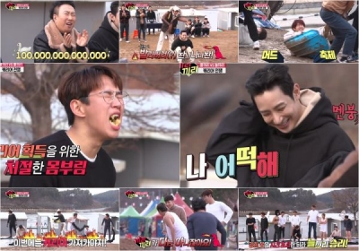 두 사람은 차가운 얼음물 속에서 뜨거운 군고구마를 순식간에 먹어 치우는가 하면 바지를 벗어 던지며 하의 실종 투혼까지 발휘하는 등 신들린 예능감을 뽐내며 웃음을 빵 터뜨렸다.