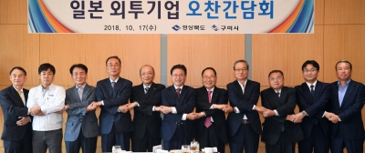 이철우 도지사는 17일 구미 소재 LG게스트하우스에서 도레이첨단소재 이영관 회장 등 8개 일본외투기업 대표자와 오찬 간담회 자리를 가졌다.