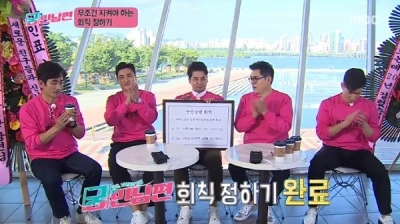 이날 다섯 남편들은 자신들이 진심으로 즐길 수 있고 이 시대 모든 남편들 역시 함께 할 수 있는 주제를 택하기 위해 ‘만장일치’, ‘위화감 조성 금지’, ‘최선을 다해 끝까지 하기’ 등을 기본 회칙을 정했다. 이후 기타, 비박, 힙합 등 그동안 가슴 속에 품었던 파이어들을 폭포수처럼 분출, 시작도 전에 거하게 심취한 모습을 보이며 폭소를 자아냈다.