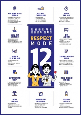 [충청뉴스큐] 강원문화재단은 올바르고 즐거운 조직문화 조성을 위해 '강원문화재단 존중문화 캠페인 ‘RESPECT MODE’'를 실시한다고 밝혔다.