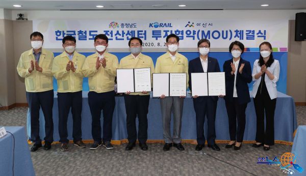양승조 지사는 26일 도청 상황실에서 손병석 한국철도공사(코레일) 사장, 오세현 아산시장과 ‘한국철도 전산센터 신축’ 투자양해각서(MOU)를 체결했다“고 밝혔다.