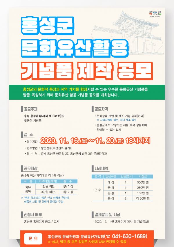 [충청뉴스큐] 홍성군이 홍성의 아름다운 경관과 역사적 가치를 널리 알리고자 대표 문화유산인 홍주읍성을 활용한 기념품 공모전을 개최한다.