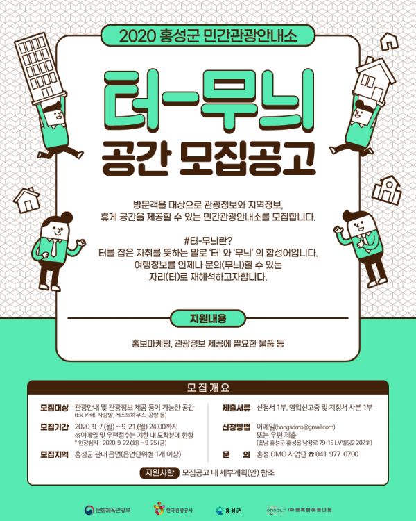 [충청뉴스큐] 홍성군이 지역관광추진조직 육성사업의 일환으로 홍성 읍면단위 지역 관광네트워크 구축을 위한 거점관광플랫폼 ‘터-무늬’에 참여할 공간 운영자를 모집한다고 10일 밝혔다.