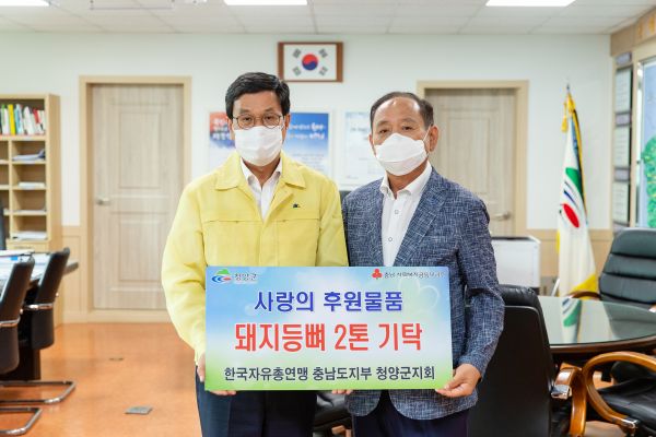 [충청뉴스큐] 한국자유총연맹 청양군지회가 지난 9일 청양군을 방문해 어려운 군민을 위해 사용해 달라며 돼지등뼈 2톤을 기탁했다.