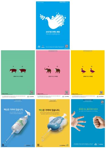 공공포스터 안에는 QR코드를 넣어 학생들이 올바른 손씻기, 올바른 마스크 착용법을 동영상으로 볼 수 있도록 세심하게 제작했다.