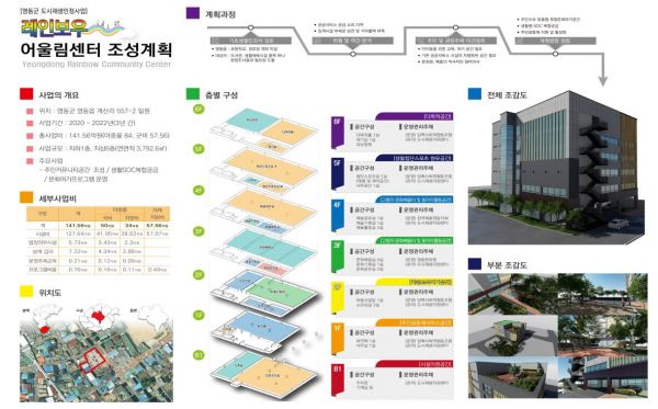 선정된 레인보우어울림센터는 지역내 부족한 생활SOC시설과 공동체·문화·예술을 복합화 하는 시설로 올해부터 3년동안 142억원을 투입해 지하1층 지상6층 연면적 4,485㎡규모로 신축된다.