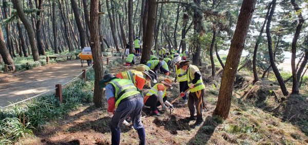 [충청뉴스큐] 서천군은 코로나19 극복 희망일자리 사업 참여자 40명과 함께 지난 10일부터 15일까지 장항 송림산림욕장에 꽃무릇 1만구를 식재했다고 밝혔다.