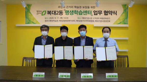 [충청뉴스큐] 청주시 평생학습관이 17일 복대가경시장 고객센터‘복합문화공간’에서 ‘복대2동 평생학습센터’설치 및 운영에 관련한 업무 협약을 체결했다.