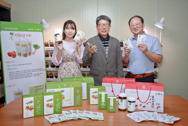 [충청뉴스큐] 충주시 농업기술센터가 농산가공 기술 상품화 시험연구사업의 성과로 충주사과와 새싹인삼을 혼합한 ‘한뿌리 삼사과’음료를 개발해 본격적인 생산 및 판매에 들어갔다.