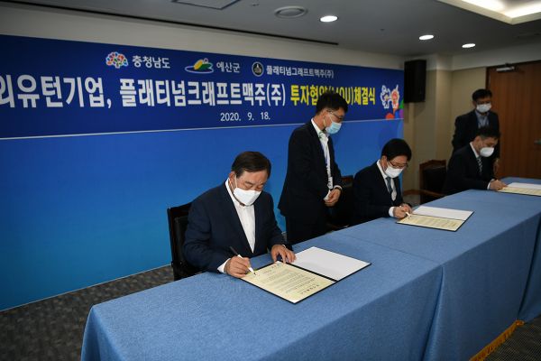 [충청뉴스큐] 예산군은 지난 18일 충남도청에서 충남도 및 플래티넘크래프트맥주와 투자협약을 체결했다.
