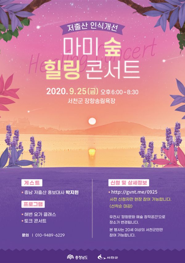 [충청뉴스큐] 서천군은 오는 25일 오후 6시에 장항송림산림욕장 일원에서 저출산 인식개선을 위한 ‘마미숲 힐링 토크 콘서트’를 개최한다.