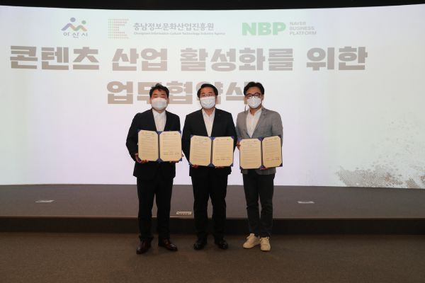 [충청뉴스큐] 아산시와 충남정보문화산업진흥원의 충남글로벌게임센터, 네이버비즈니스플랫폼이 아산 지역 게임 산업 활성화를 위한 게임 인프라 기반 확충 업무협약을 맺었다.