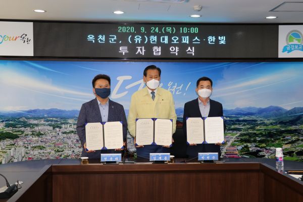 [충청뉴스큐] 옥천군은 옥천테크노밸리에 사무기기 제조기업인 현대오피스, 자동차 부품 제조업체인 한빛과 543억원 규모의 신설 투자를 유치한다.