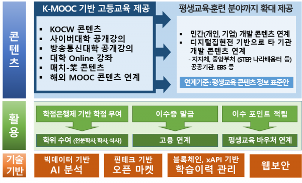 학습 결과는 취·창업, 고용과 연계할 수 있고 고등교육 수준의 콘텐츠는 학습을 통해 학점과 학위까지 취득할 수 있도록 한다.