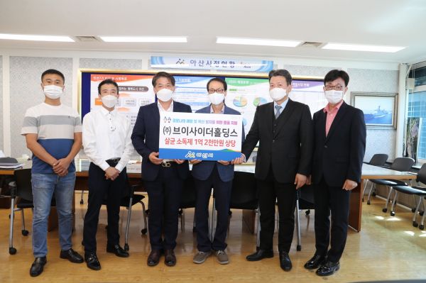 [충청뉴스큐] ㈜브이사이더홀딩스가 지난 24일 아산시를 방문해 코로나19 예방 및 확산 방지를 위해 자체 생산한 1억2,000만원 상당 살균 소독제 1만개를 전달했다.