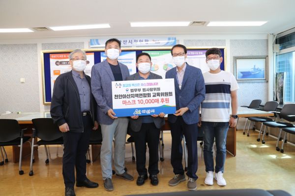 [충청뉴스큐] 법무부 법사랑위원천안·아산지역연합회 교육위원회가 지난 24일 아산시를 방문해 코로나19 예방 및 확산 방지를 위한 마스크 1만매를 기부했다.