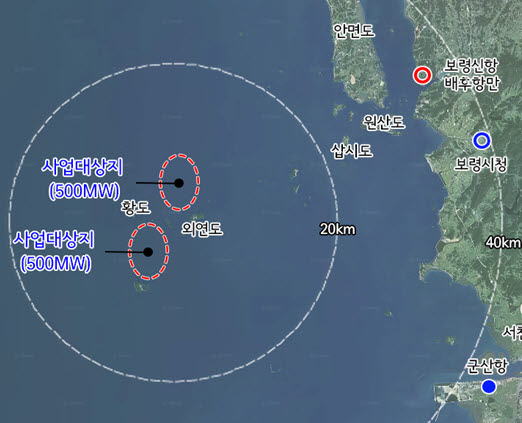 보령시가 공모에 참여한 해상풍력 단지는 보령시와 한국중부발전이 공동으로 참여해 외연도 북측, 황도 남측 해상 62.8km 면적에 오는 2025년까지 1GW급 해상풍력 발전 설비를 갖추는 것으로 약 6조원이 소요된다.
