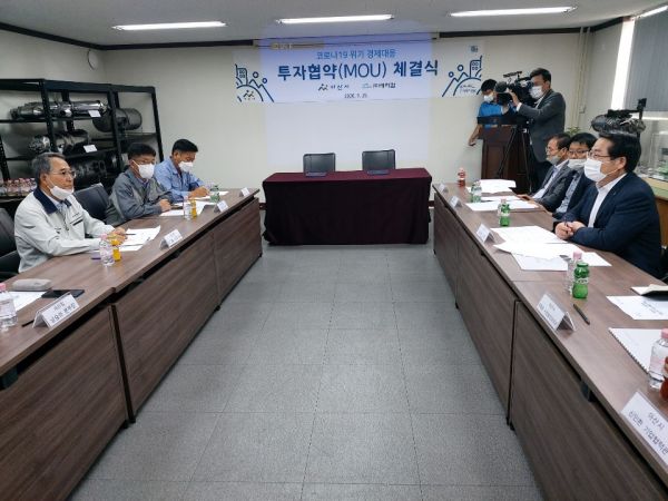 [충청뉴스큐] 오세현 아산시장이 25일 ㈜세라컴을 방문해 기업관계자와 근로자를 격려하고 투자 MOU를 체결했다.