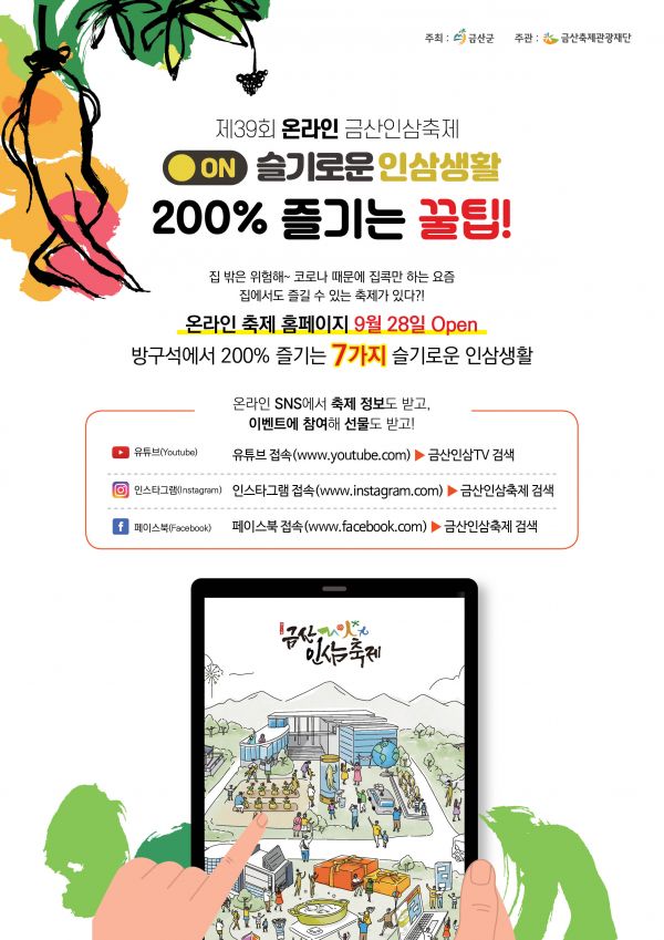 [충청뉴스큐] 금산축제관광재단은 오는 10월 9일부터 시작하는 제39회 온라인 금산인삼축제 프로그램 홍보에 나선다.