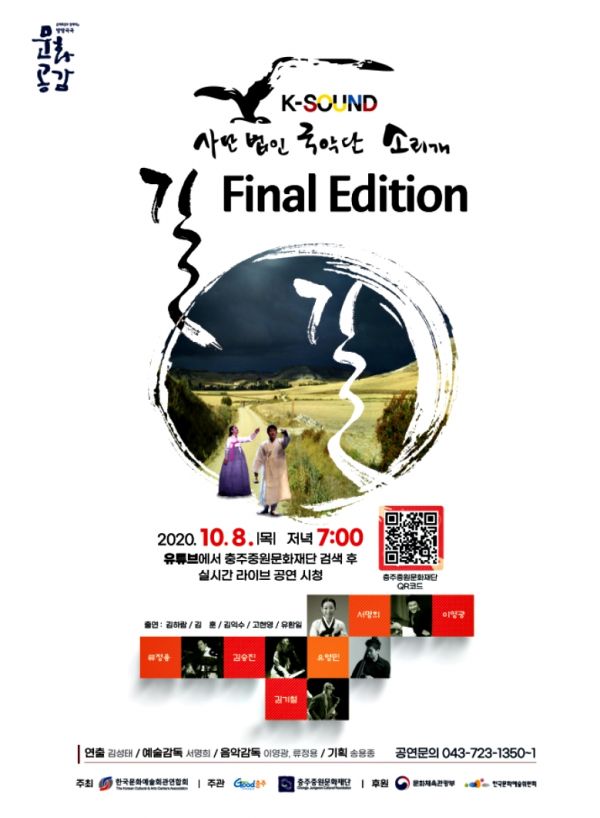 [충청뉴스큐] 국악단‘소리개’가 공연하는 ‘길 Final Edition’이 오는 8일 오후 7시 충주중원문화재단 유튜브에서 온라인 공연으로 진행된다.