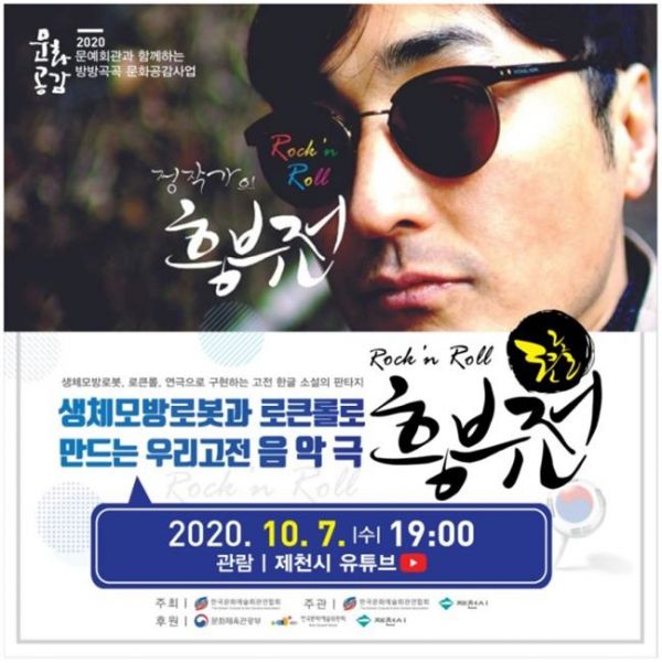 [충청뉴스큐] 제천시는 오는 7일 오후 7시, 지속되는 코로나 19의 여파로 지쳐있는 제천시민의 심신을 위로하고자 제천시 공식 유튜브를 통해 음악극 ‘로큰롤 흥부전’을 생중계한다.