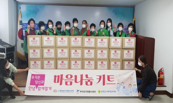[충청뉴스큐] 부여군자원봉사센터는 부여군새마을부녀회와 지난 9월 28일 새마을운동부여군지회 회의실에서 ‘안녕 함께할게’ 마음나눔 키트 제작·배부 자원봉사를 실시했다.