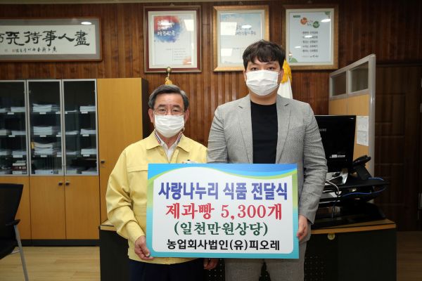 [충청뉴스큐] 농업회사법인 피오레는 지난 5일 사회복지시설 등에 전달해달라며 직접 제조한 제과빵 5300개를 서천군에 기탁했다.